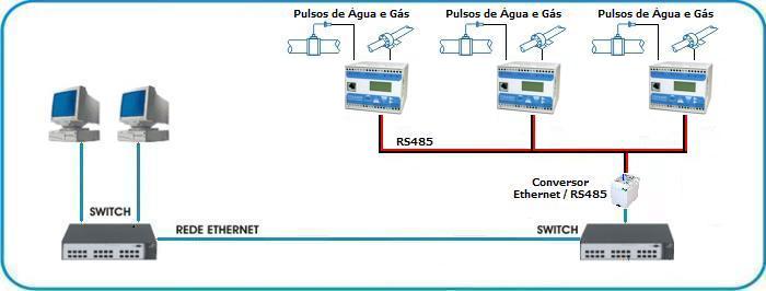Duas entradas de pulsos para contagem de pulsos (sem memória de massa) de Água, Gás, etc;