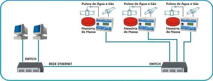 • Duas entradas de pulsos para contagem de pulsos (sem memória de massa) de Água, Gás, etc;