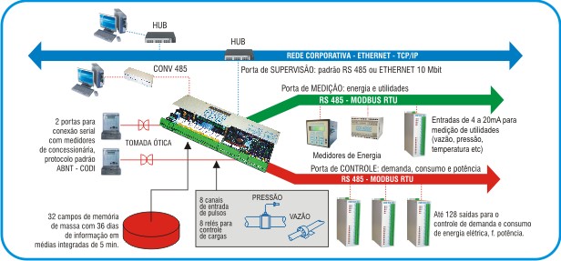 Quando conectado as unidades CCK pode ser utilizado no controle de demanda, fator de potência e atuações por horário pré-programado.